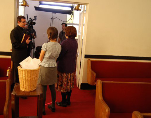 The writer, director, choreographer, and ballet dancers on the set of the award-winning film Go-Go Reject .